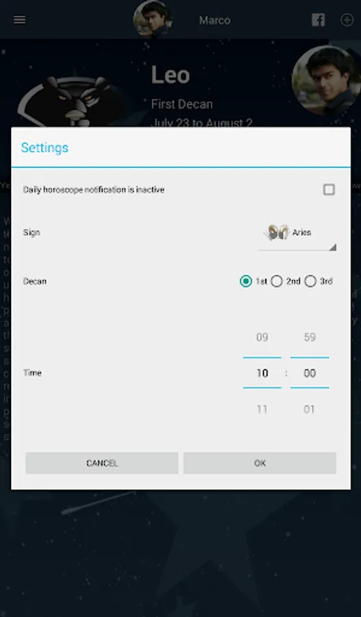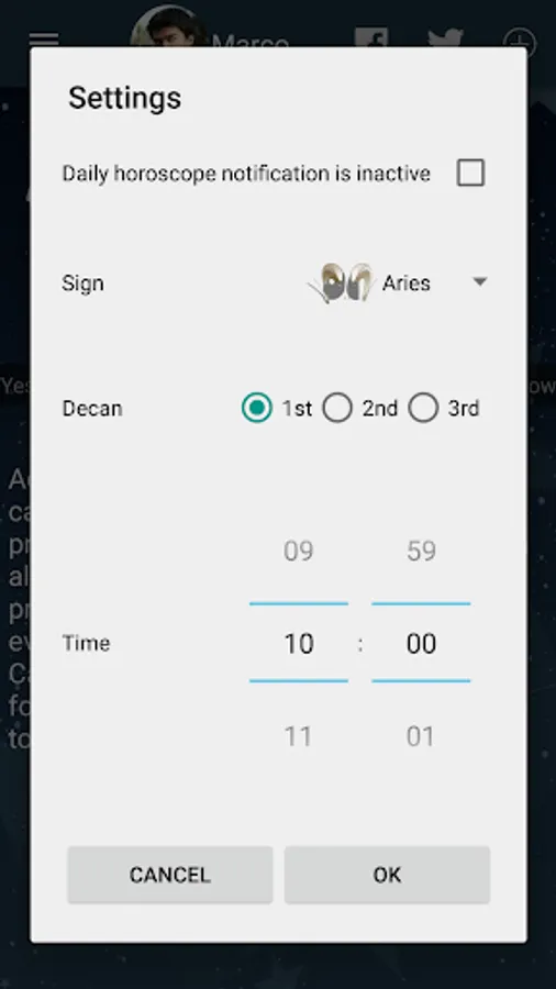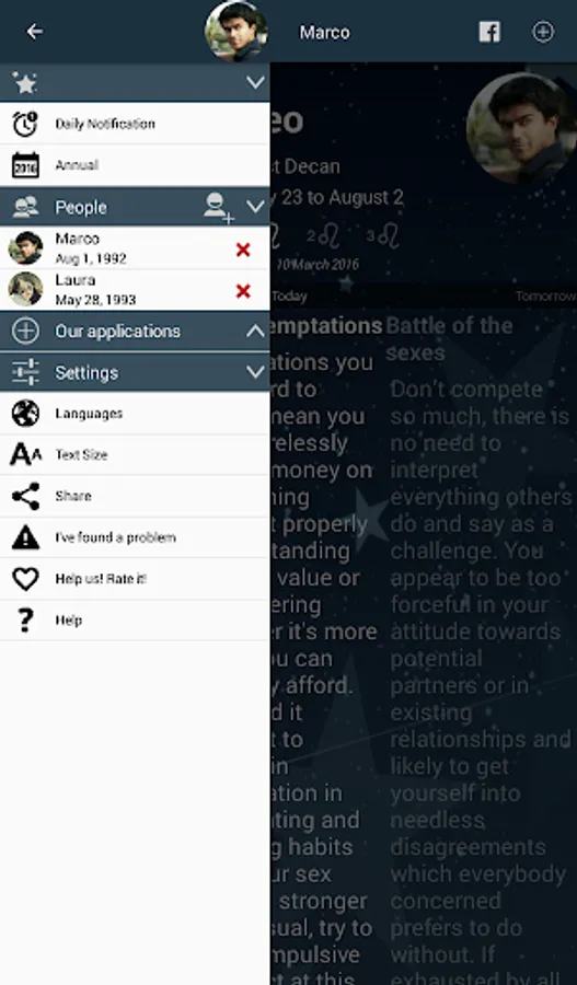 Get your horoscope or that of your friends as a daily PUSH Message at a requested time !