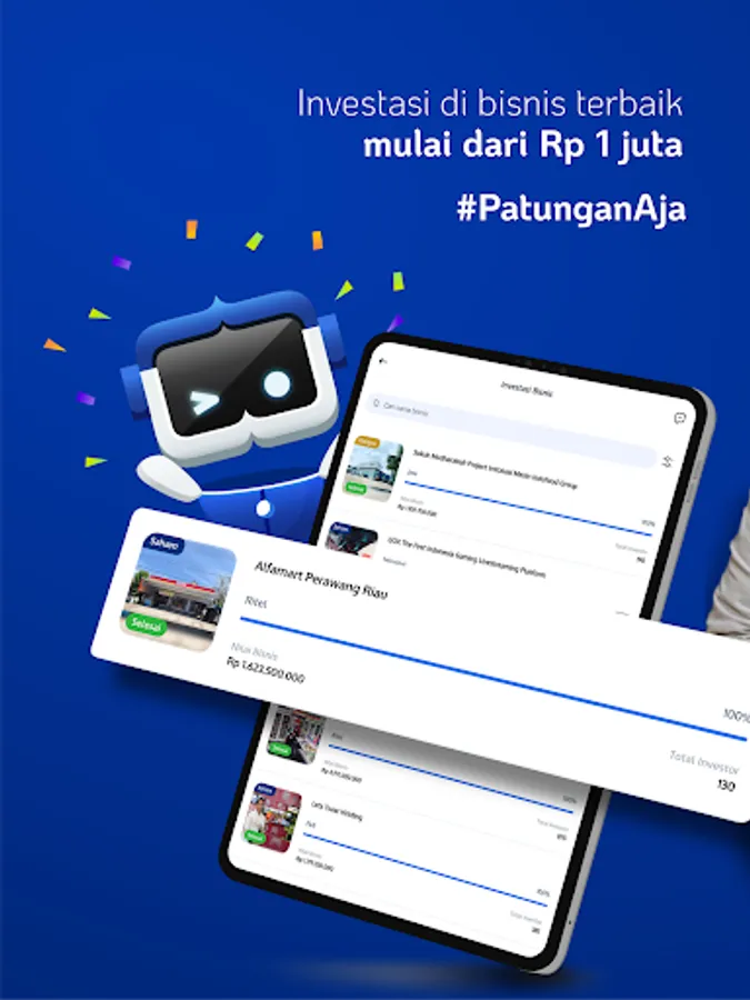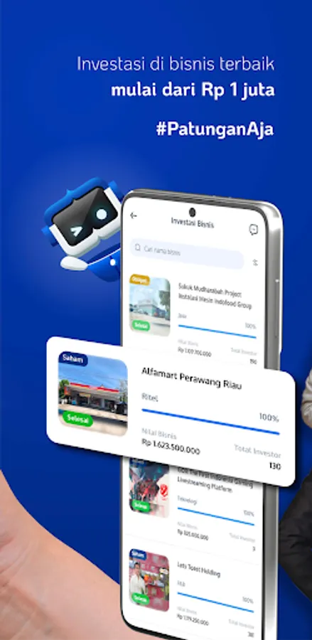 Bayangkan saja, kini Anda dapat semakin mudah untuk wujudkan mimpi Anda dan Miliki bisnis apapun dalam satu genggaman, mulai bisnis F&B, Retail Minimarket, Jasa, Properti, Startup Teknologi, dan masih banyak lagi, mulai dari modal kecil sekalipun, untuk dapatkan pendapatan pasif melalui dividen/imbal hasil bisnisnya secara rutin.