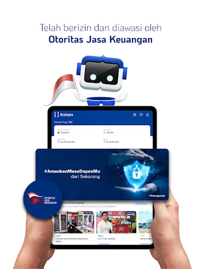 Bizhare (PT. Investasi Digital Nusantara) sebagai platform Securities/Equity Crowdfunding, sudah berizin dan diawasi oleh Otoritas Jasa Keuangan (OJK). Selain itu, investasi anda akan tercatat secara resmi di Bank Kustodian dan KSEI, sehingga anda bisa lebih tenang, Aman dan nyaman saat berinvestasi.