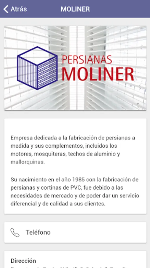 Company dedicated to the manufacture of custom blinds and accessories, including engines, mosquito nets, aluminum roofs and shutters.