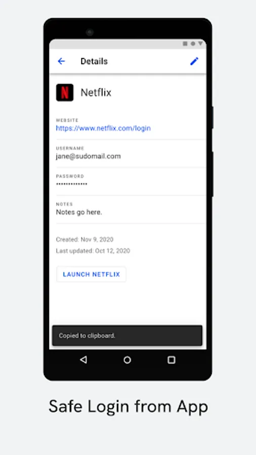 Add your account logins, credit cards, and bank accounts to the password manager vault. Each will be encrypted and only accessible by you. Not even we can see your data stored in the vault.