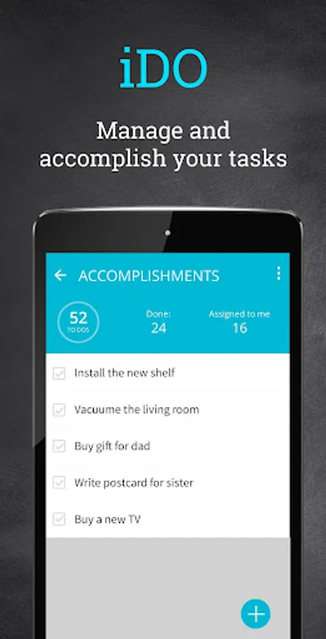 iDO is the easiest way to get things done. It was developed to organize your tasks, manage your to do lists and optimize your productivity. It's beautifully designed, simple and fast.