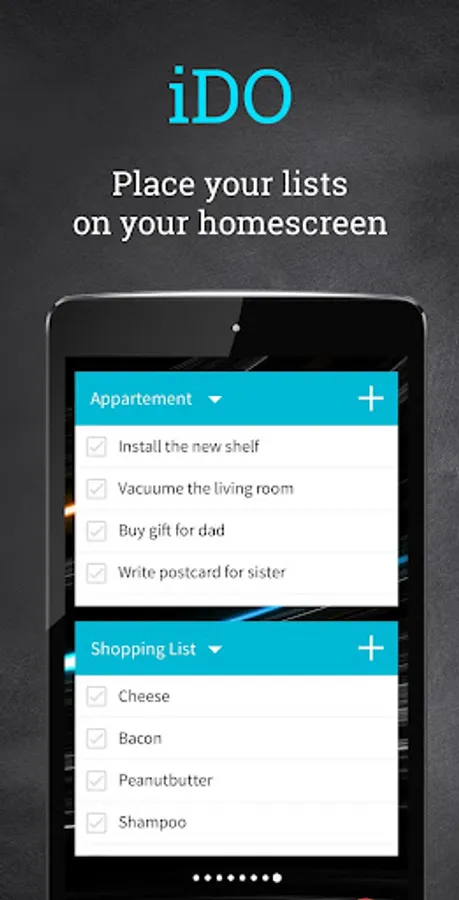 Easily create tasks, add them to your to do list and access them from everywhere. Add a shopping list, plan your household, organize a holiday or manage your daily work - it's easy.