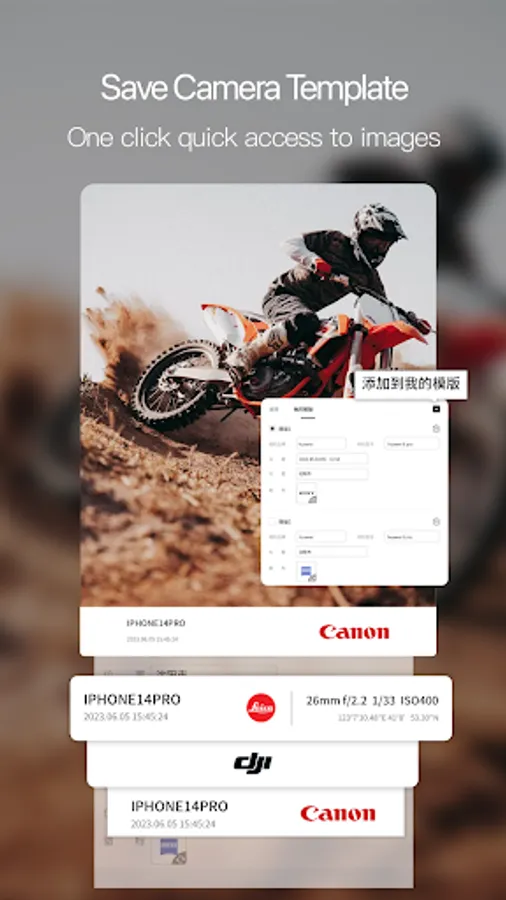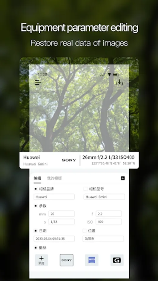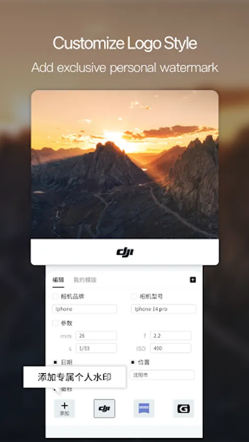 Covering various camera brand watermarks such as Leica, Hasselle, Sony, and mobile phone brand watermarks. Add camera watermarks and parameters to photos to showcase their realism and sophistication.