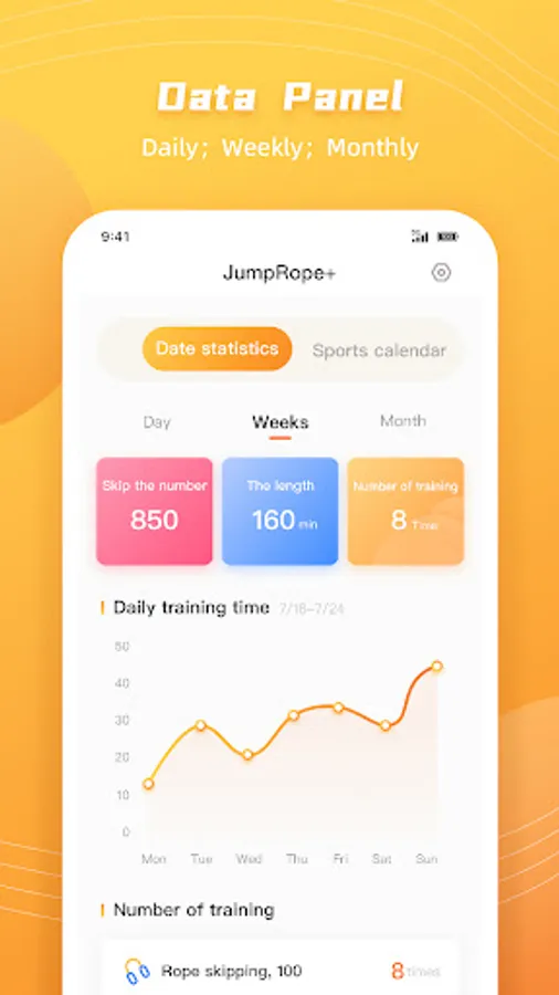 Real-time data record update, you can see the daily, weekly and monthly jump rope number, training time and training times, see your own movement changes more data, and adjust your exercise volume.