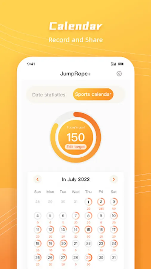 You can set an exercise goal by yourself, motivate yourself to complete the number of exercises every day, keep a record on the calendar, remind yourself to exercise every day and stick to it, and you can also share it with your friends and share your exercise results.