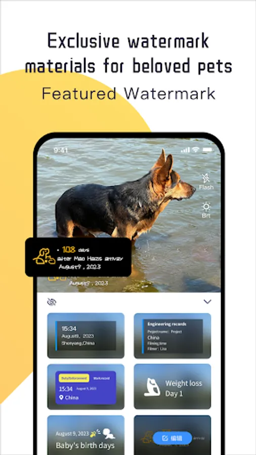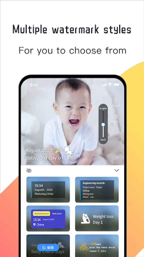 You can choose from a variety of watermark styles in your work and life, including fixed time and place clocking, one click access to the current time and place as a watermark, and baby birth days, engineering, duty, weight loss records, etc. Your watermark is the final say~