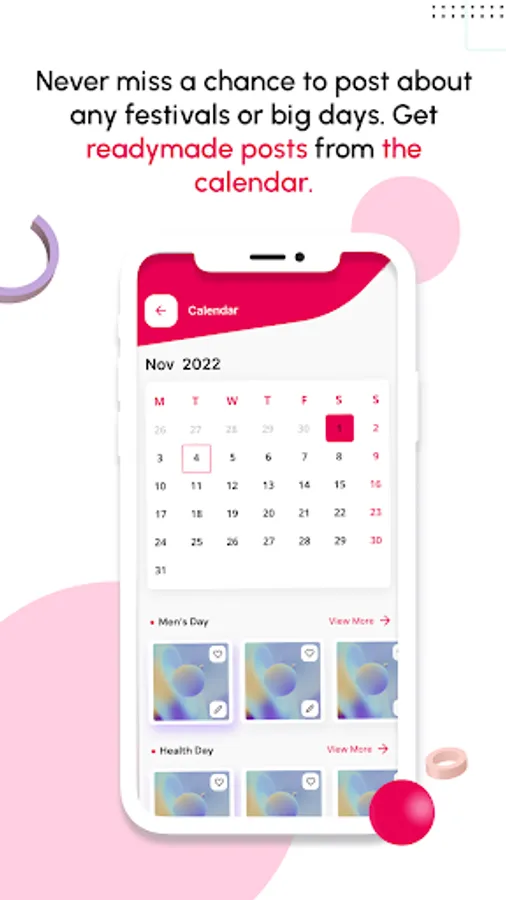 2) Don't worry about social media engagement. Never miss posting about any festivals or big days. Get a readymade post from the calendar.