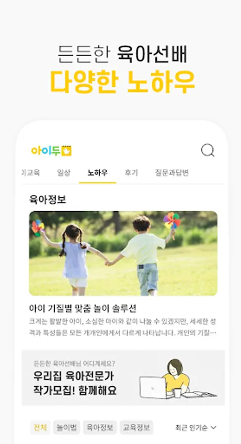 - You can find know-how suitable for play method, parenting information, and education information categories.