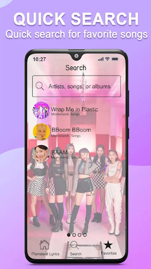 Thank you for trusting and using the Momoland Lyrics application. We created this application with the desire to satisfy the love of true kpop fans, especially the ForEver community for Momoland. We hope you will have a healthy mental playground that helps you relax and have great entertainment after a long day of stressful work and studying. Don't miss our cool app !