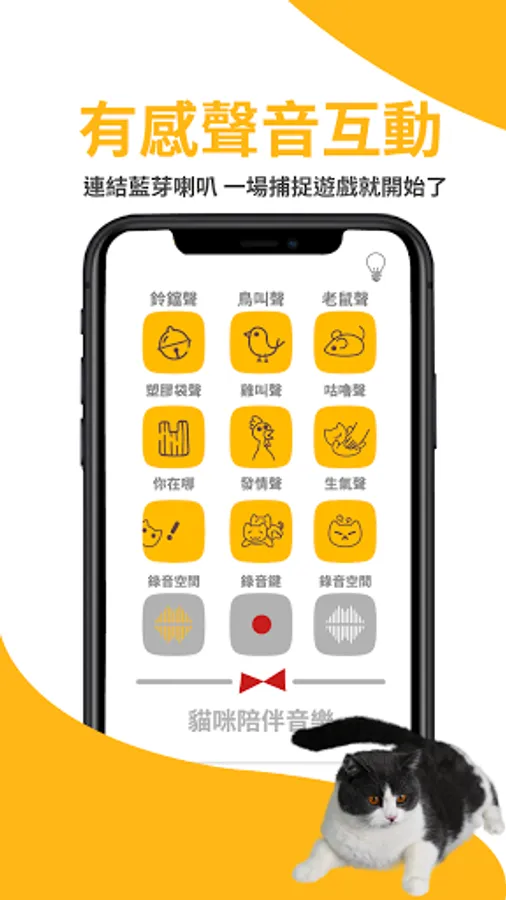 Cats’ hearing is three times that of humans. Cats are particularly interested in some sounds. Funny Cat contains 6 sounds that interest cats. Connect your Bluetooth speakers and a game of capturing sounds begins! In addition, we also have a recording function, so you can record whatever you want!