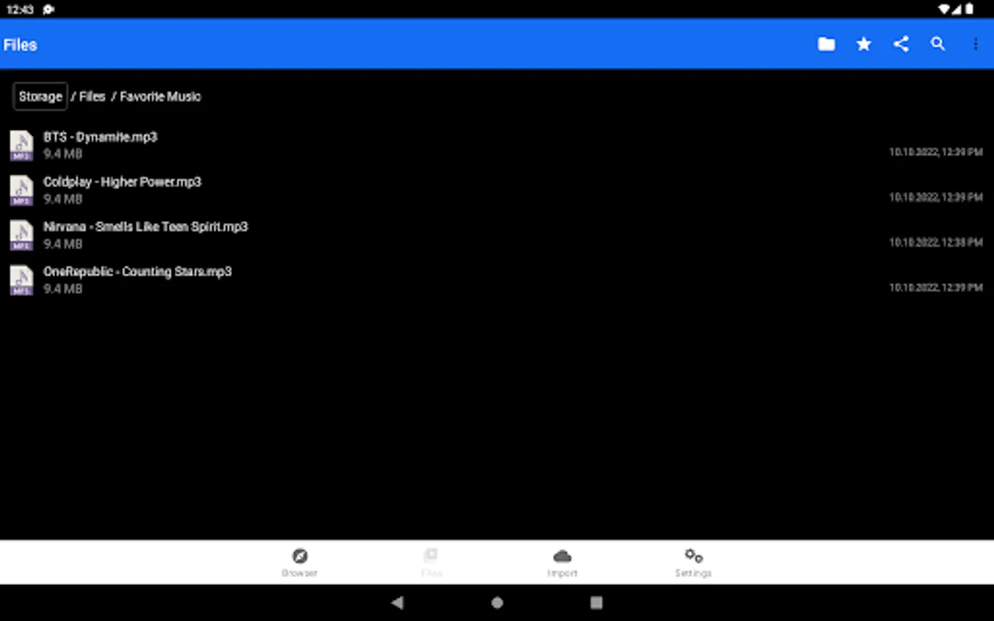 - Import music, video and docs files from other apps and locations on your device.