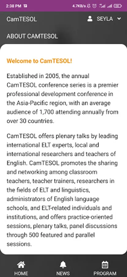 CamTESOL is a conference for professionals in the field of English Language Teaching and related issues. The first CamTESOL conference was in 2005 on the theme of “Practical Issues in Teaching”. This focus on the practice of ELT has continued. CamTESOL has now become the premier professional development conference in the Asia Pacific region with an average audience of 1,700 attending annually (over 600 of whom are international participants from over 30 countries).
