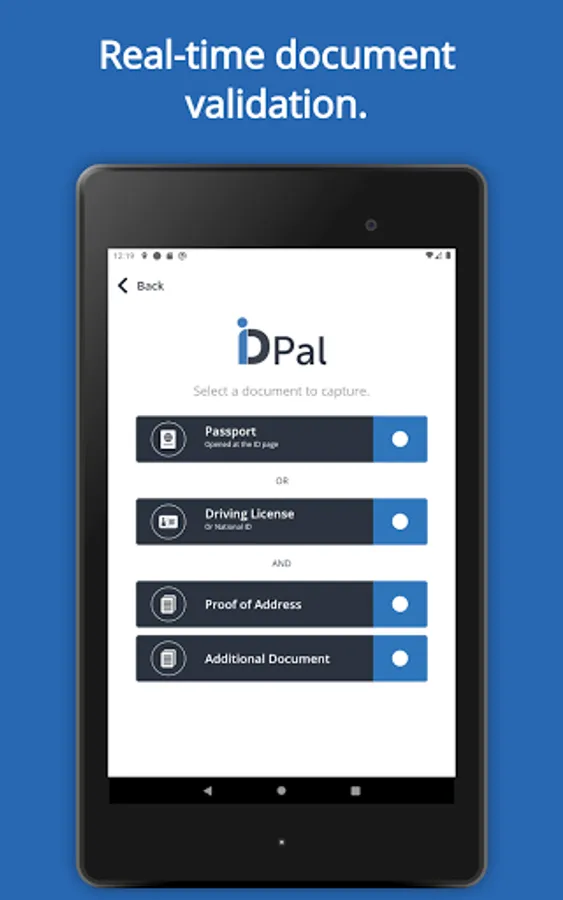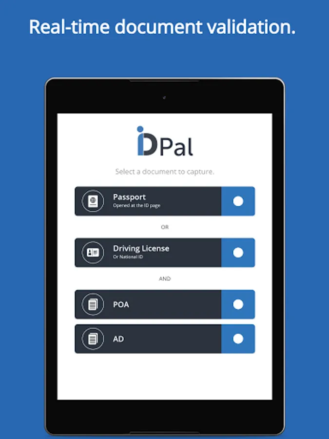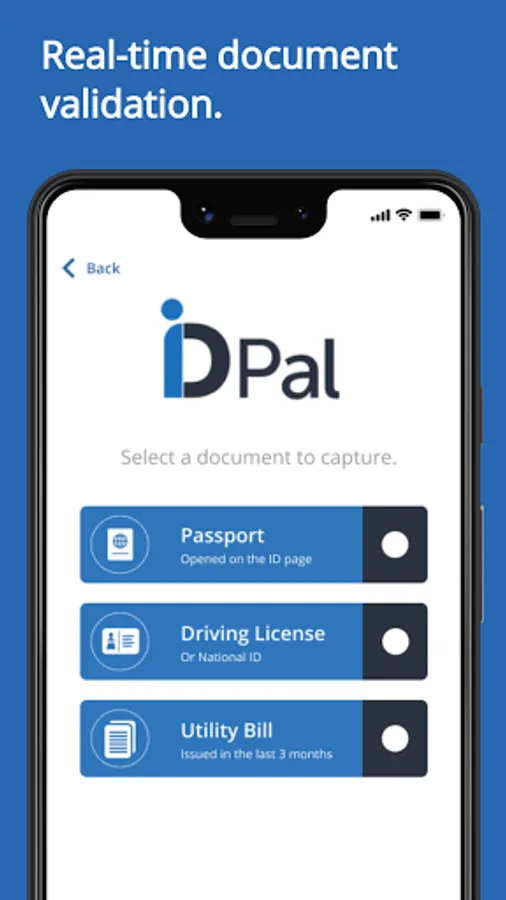 Using advanced technology, verifying your identity is quick, easy and secure. In just a few clicks you can submit documents via our app. The ID-Pal app uses a unique blend of checks to correctly verify your identity in real-time for a business.
