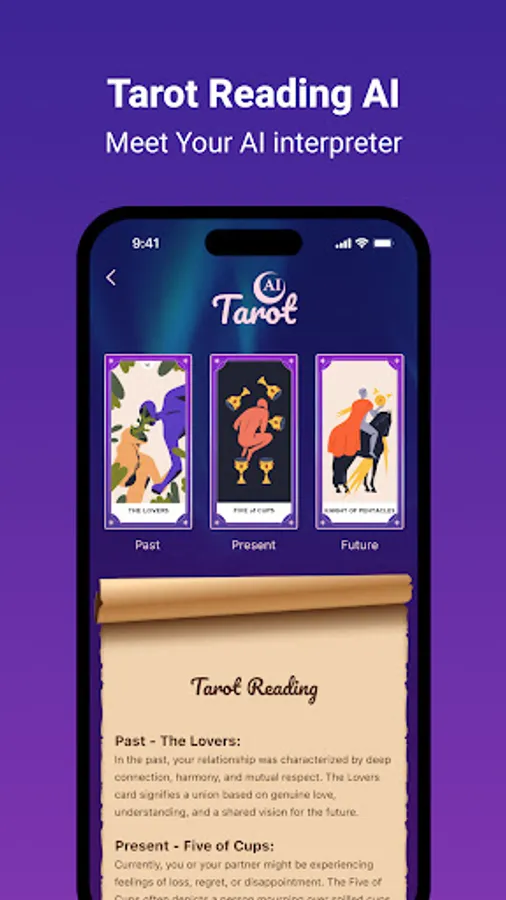 AI Interpretation: Powered by cutting-edge artificial intelligence, our app interprets the cards’ meanings with depth and clarity, providing nuanced readings that resonate with your unique journey.