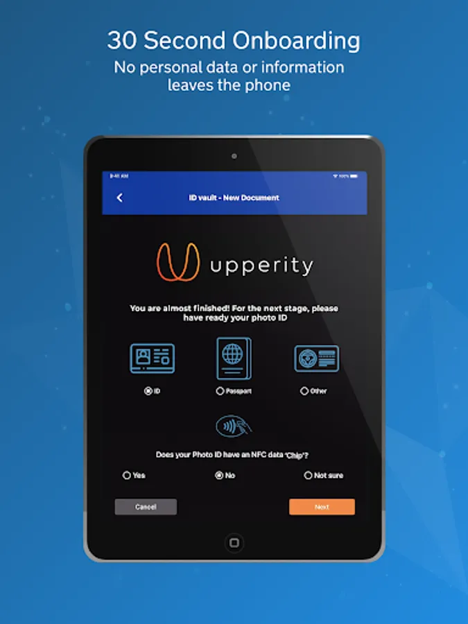 Upperity ID is the Next Generation Digital Identity. Upperity ID is based on the patented IdNFT™ technology that shares the same characteristics of a nonfungible token (NFT) – security and identity uniqueness. This blockchain Digital ID is the most secure way to demonstrate and respect identity ownership.