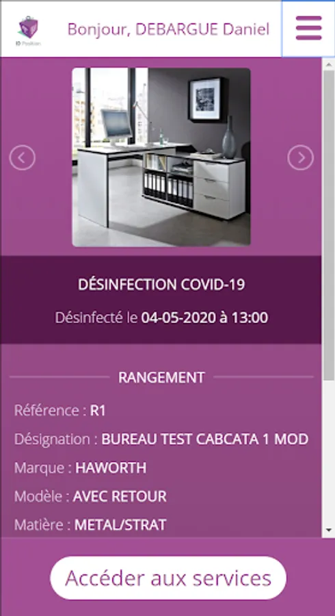 To address tracking needs emerging with new workspace cleaning practices, ID Position developers implemented the following evolutions: