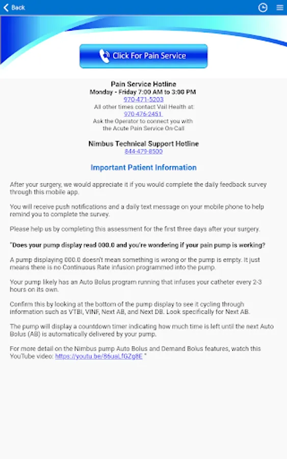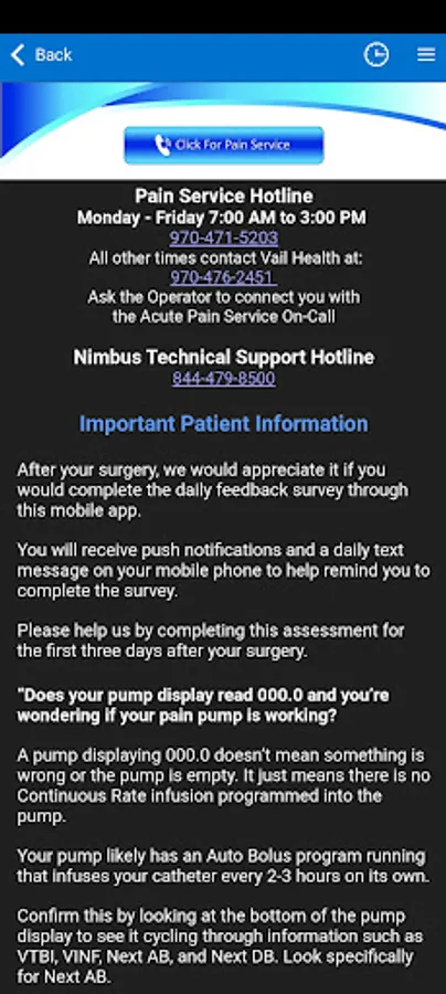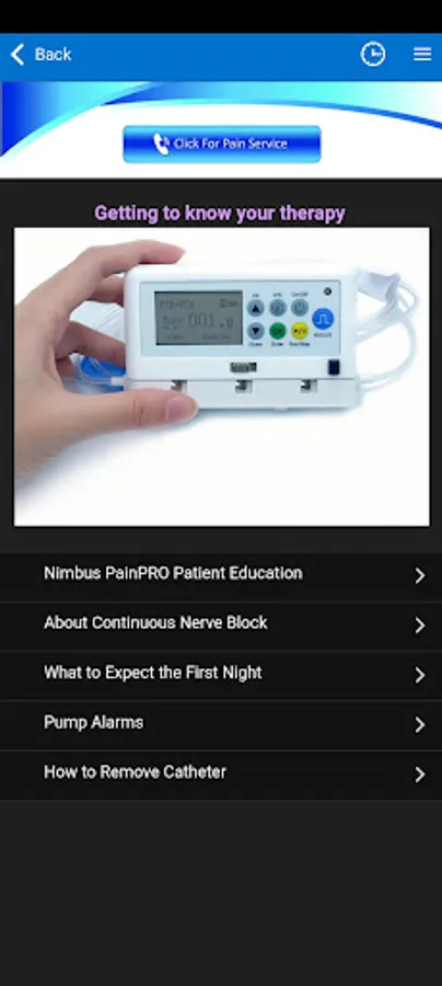 Put your most important infusion information at your fingertips. Install PainPro today and enter the therapy code provided by your infusion facility to see your own custom treatment plan. For more information on Infusion Made Easy, visit www.nimbus.com