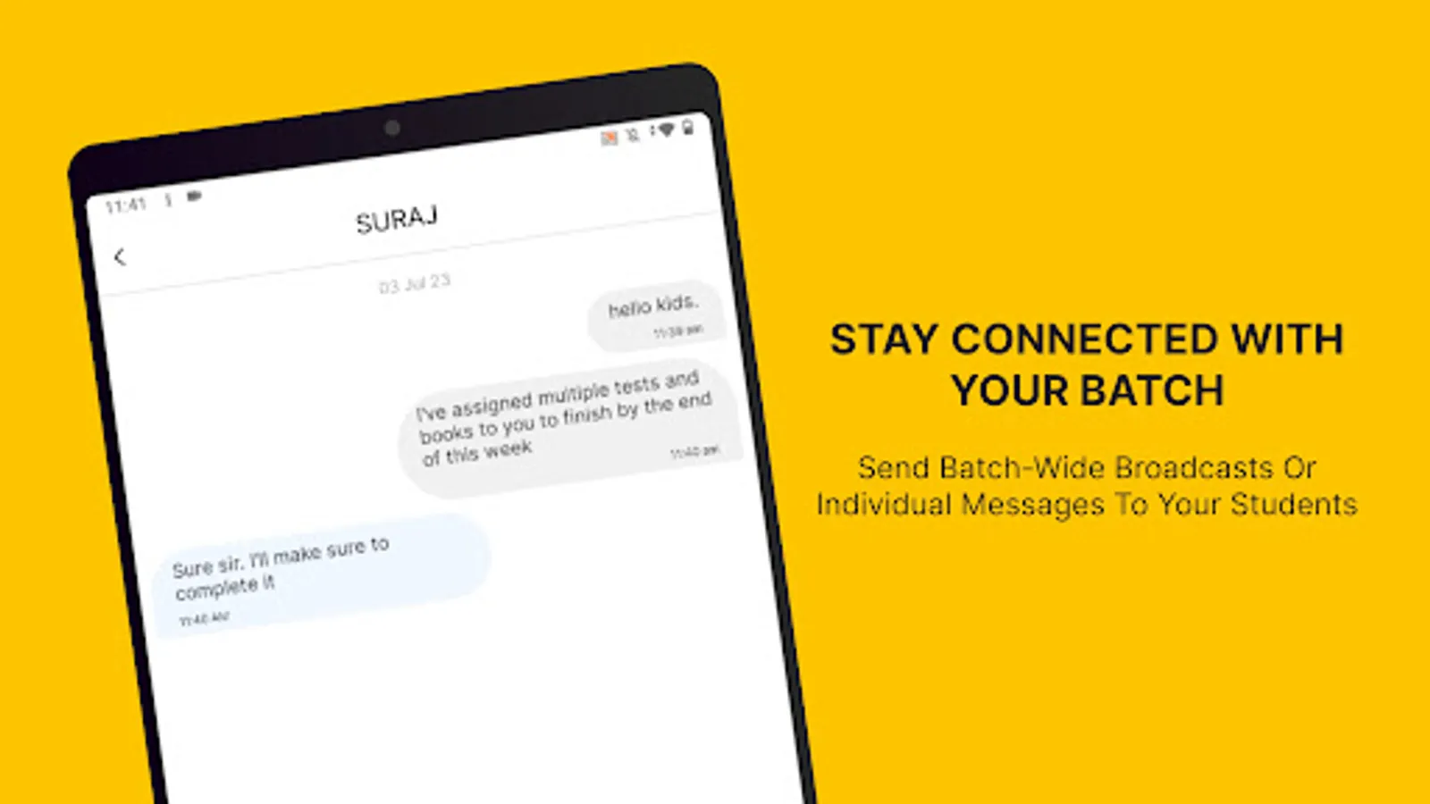 Keep the lines of communication open through the in-app messaging feature. It comes with batch-wide broadcasts and individual messaging options. This will help you disseminate crucial updates, resources, and guidance seamlessly to support your student's learning journey.