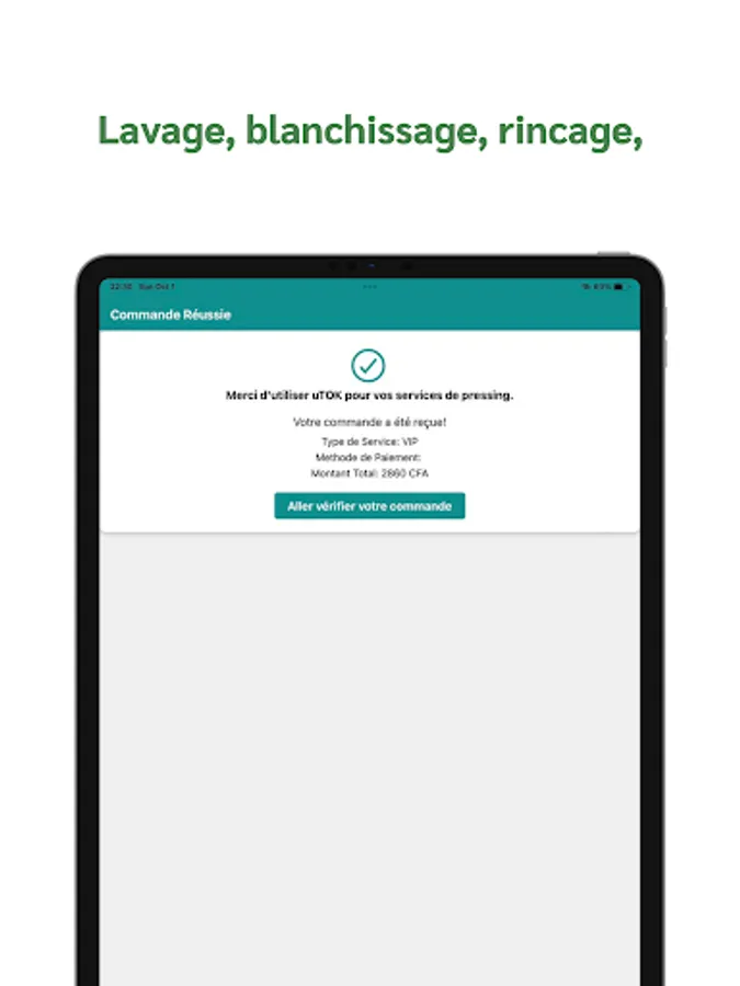 Découvrez uTOK, l'application de blanchisserie en ligne qui rend le processus de lavage de vos vêtements plus pratique que jamais. Notre application permet aux utilisateurs de passer commande pour le nettoyage de leurs vêtements en quelques clics seulement. Nous nous occupons de récupérer vos vêtements, de les laver avec soin et de vous les livrer rapidement, le tout dans des délais rapides.