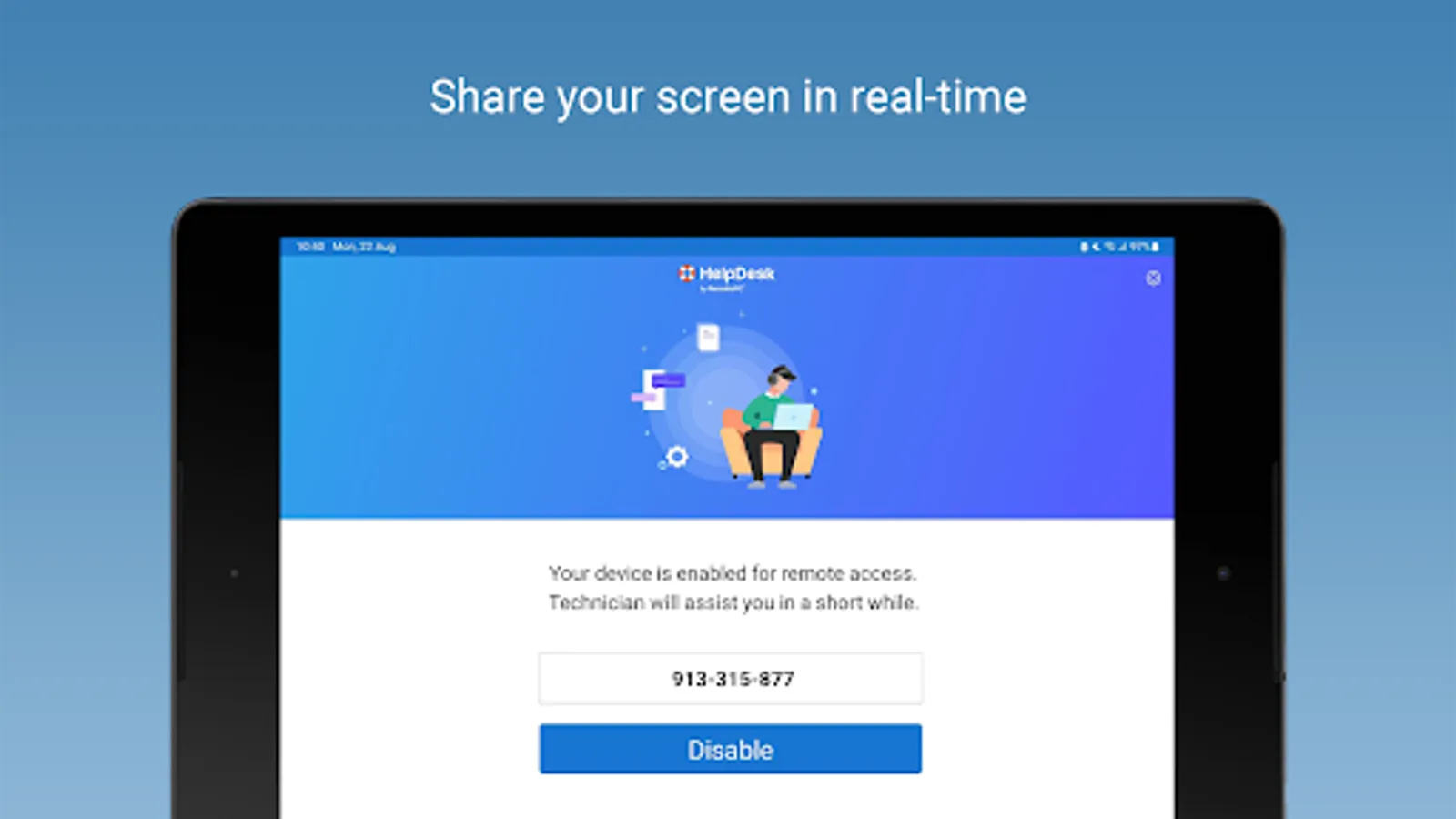 Receive on-demand remote assistance instantly or schedule a session with HelpDesk by RemotePC. Using a one-time app installation, your issues are resolved in a secure way.