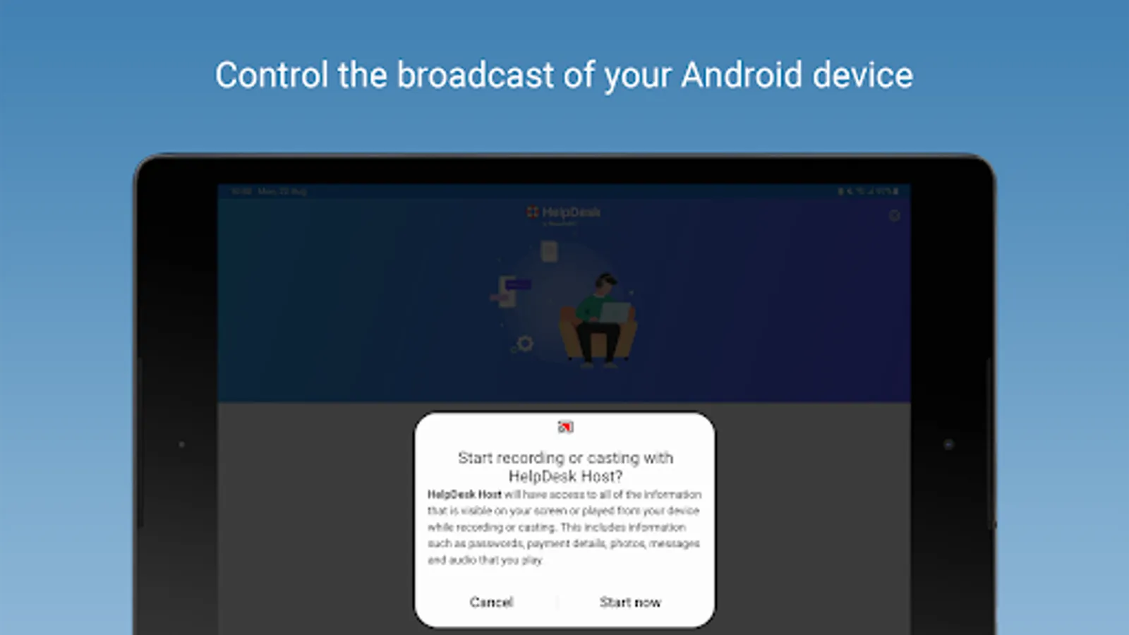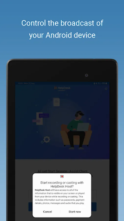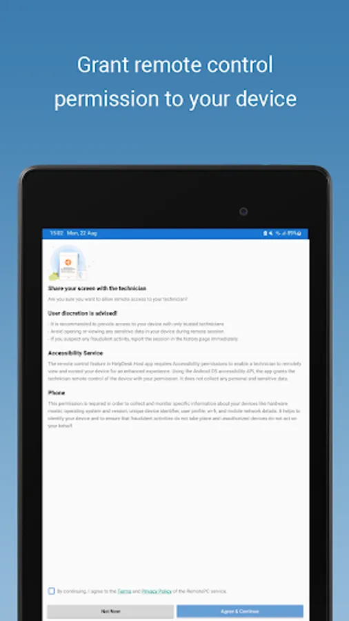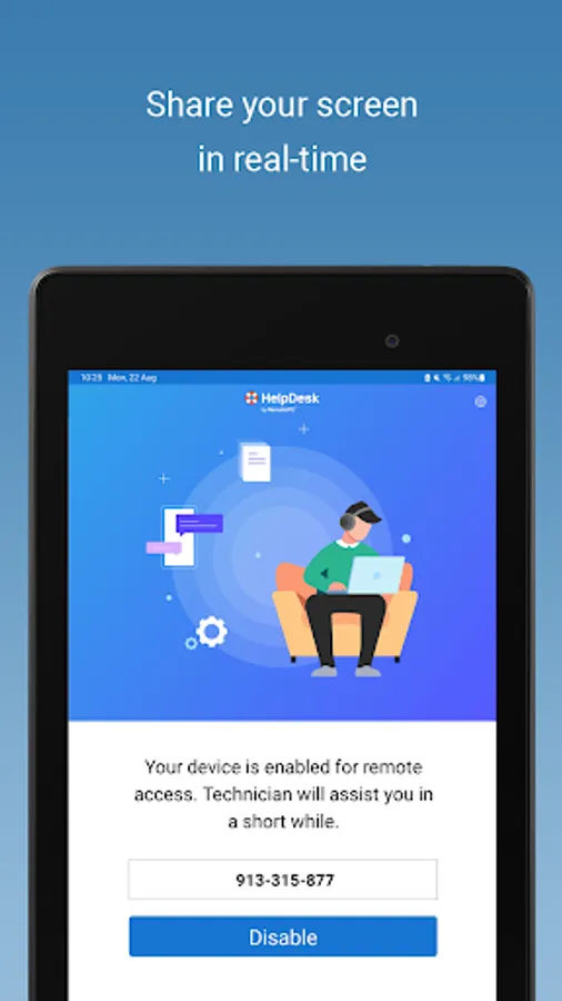 The remote control feature in HelpDesk Host app requires Accessibility permissions to enable a technician to remotely view and control your device for enhanced experience.