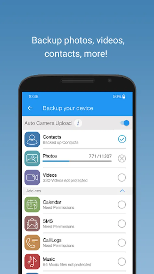 - Backup multiple Android smartphones and tablets to a single IDrive 360 account