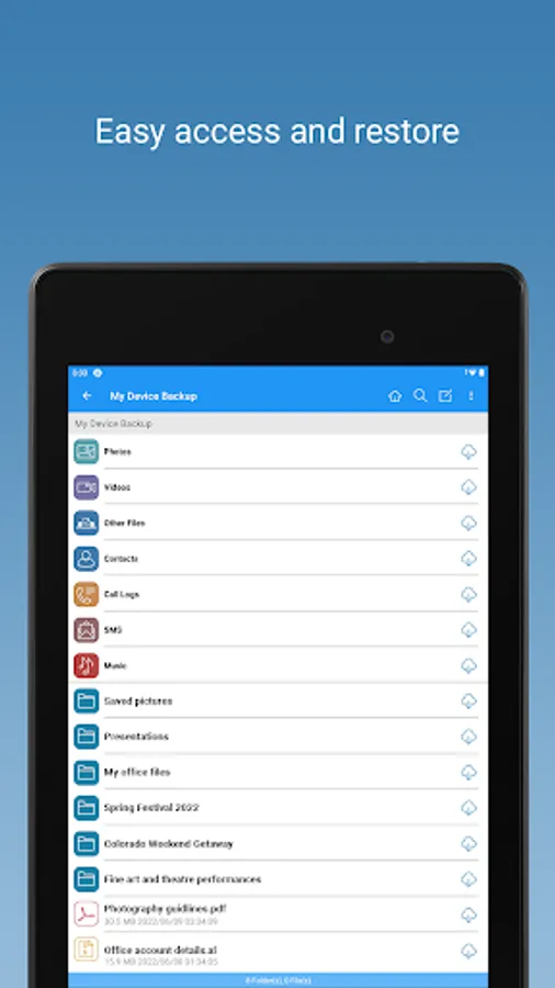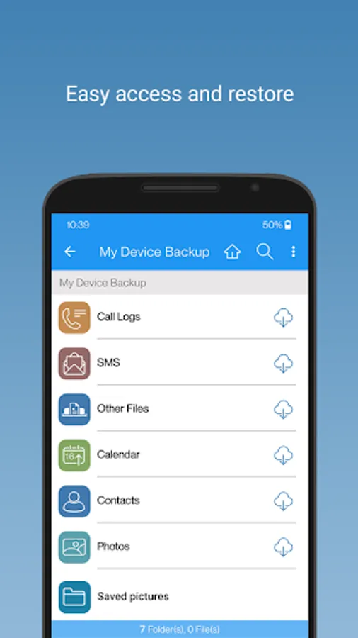 - Browse mobile files and retrieve backed up photos, contacts, videos, and calendar events at any time