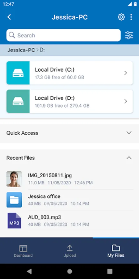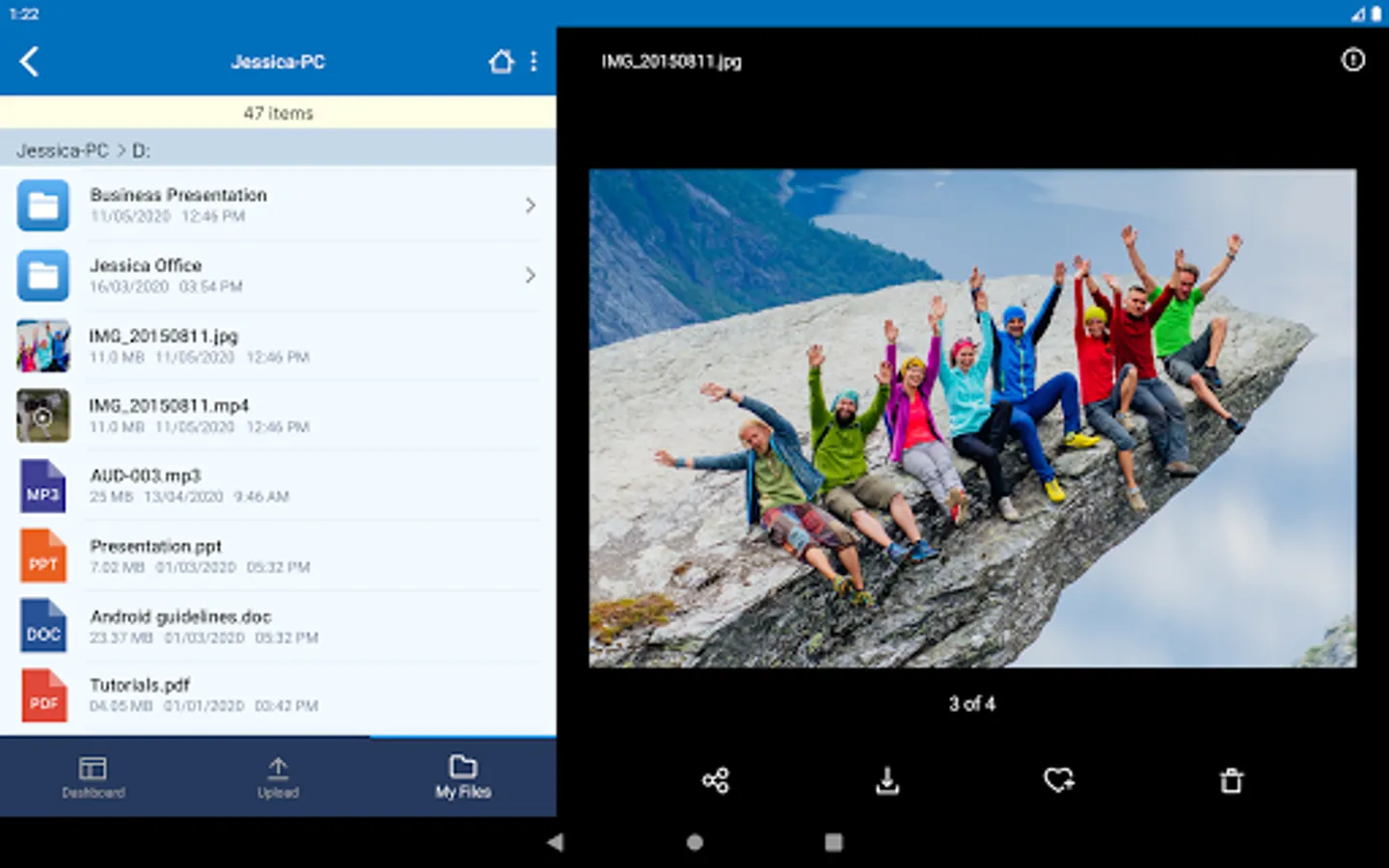 - From the ‘My Files’ section, manage your documents, as you would from your desktop or laptop