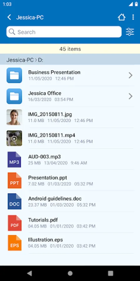 - Search for files within the computer, from your mobile device