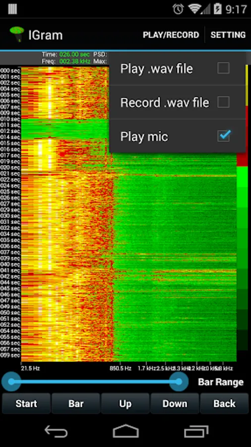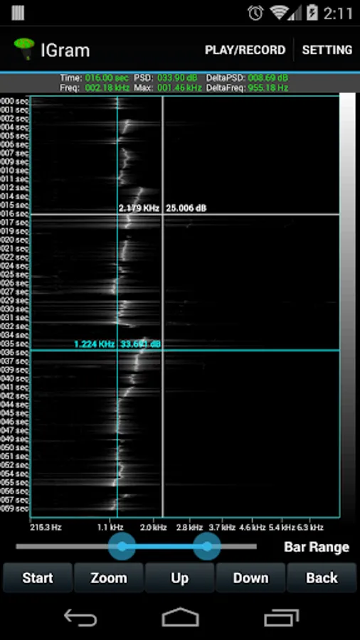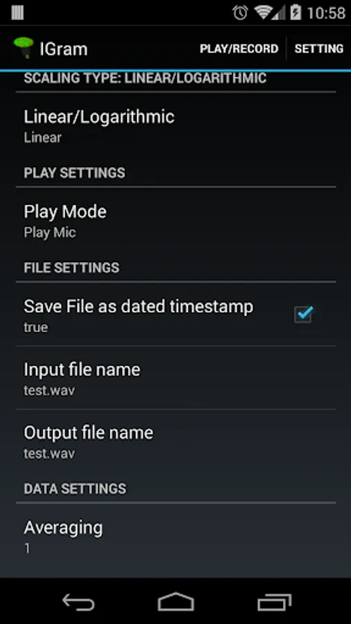 A spectrogram version of ISpectrum. The App displays fast gram spectral data taken real-time from audio microphone data. Useful for musicians, piano, guitar and speaker tuning, sound/acoustics engineers, sonar, signal processing engineers and hobbies interested in recording environments.