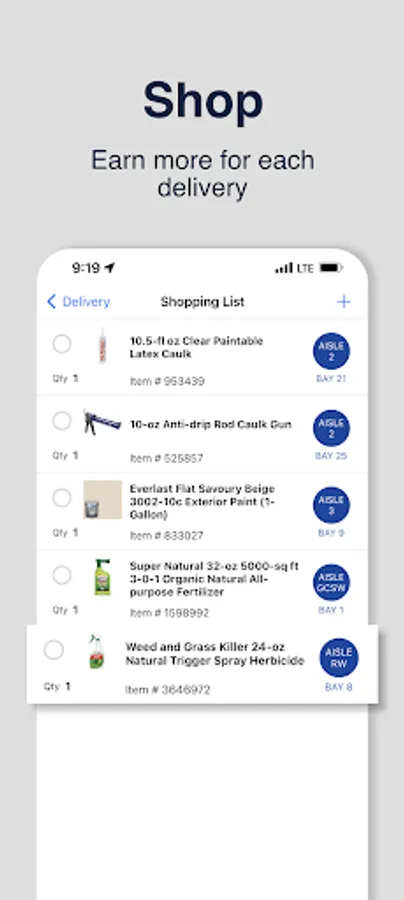 1. Claim Order - View and claim an available order. Drive to the indicated home improvement store.