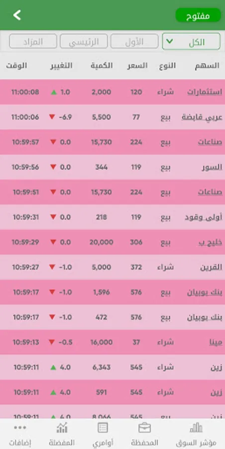 - إمكانية تعديل الأوامر السارية بتعديل السعر أو الكمية أو صلاحية الأمر أو إلغاء الأمر