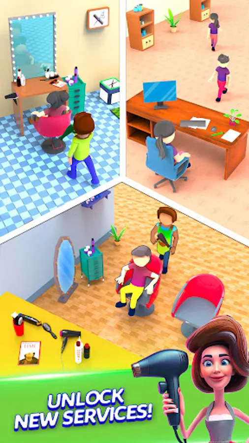 Ready to manage your idle hair salon? Build your hair salon tycoon 💆🏽 step by step, attract more and more new customers, earn more profits, and become a beauty salon tycoon! Take on the challenge and become rich while running your family business as an idle hair salon tycoon games 🎮!