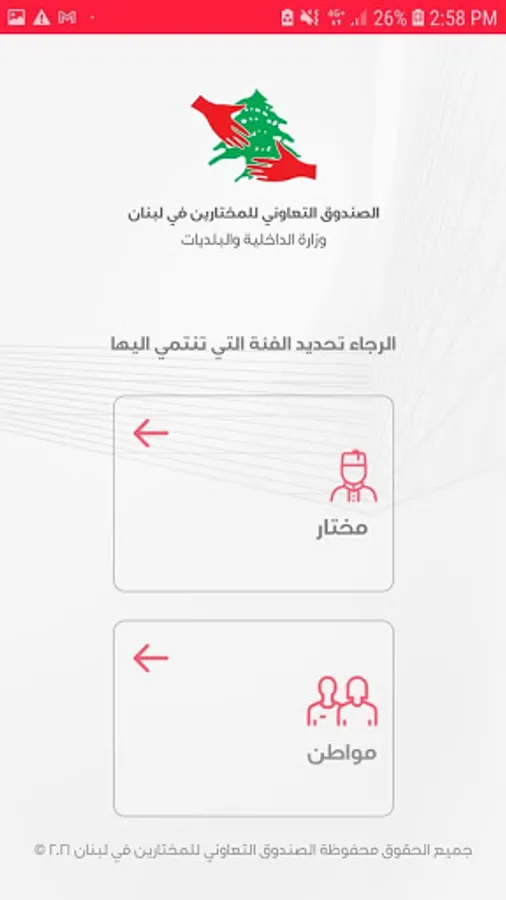 The official application of the Cooperative Fund for the Mukhtars in Lebanon