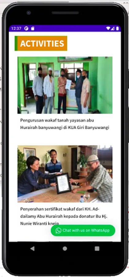 Is an application for alumni and members of the Foundation. Providing the latest information and events from the Abu Hurairah Banyuwangi Foundation