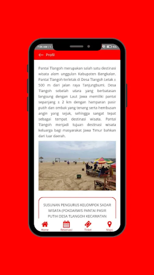 Tlangoh Beach has become a tourist icon for Bangkalan Regency. In providing more appropriate services and information to tourists. We provide a multipurpose application. which provides access and information related to profiles, tours, accommodation, services, culinary, souvenirs and also location maps.