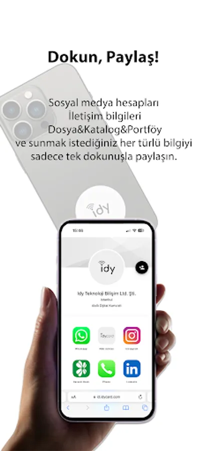 Idycard is a smart digital business card with NFC technology, you can instantly share your contact information, social media accounts, payment methods, music and all the information you want by bringing your smart Idycard close to the other party's phone.
