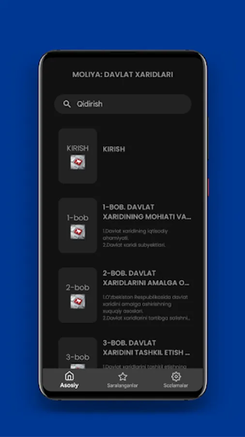 Мазкур инновaцион электрон дарслик Ўзбекистон Республикаси Олий таълим, фан ва инновациялар вазирлиги томонидан бакалавриат таълим йўналишлари учун учун тавсия этилган, PhD, доцент Ж.Х. Раззақов томонидан ёзилган “Молия: давлат харидлари” номли дарслик асосида яратилган.