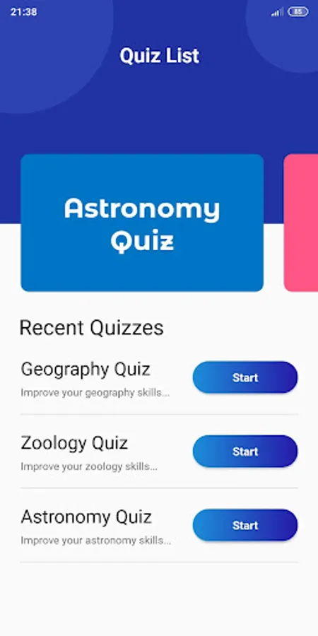 This app lets you test your knowledge on Astronomy, Geography, and Zoology with interesting questions. More subjects are coming soon...!