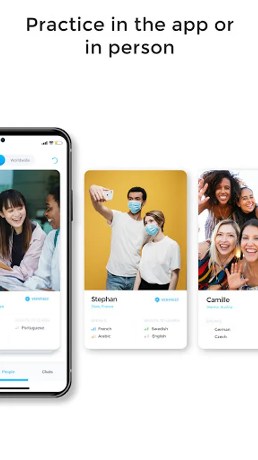 - Discover language partners in different locations using the “Worldwide” function