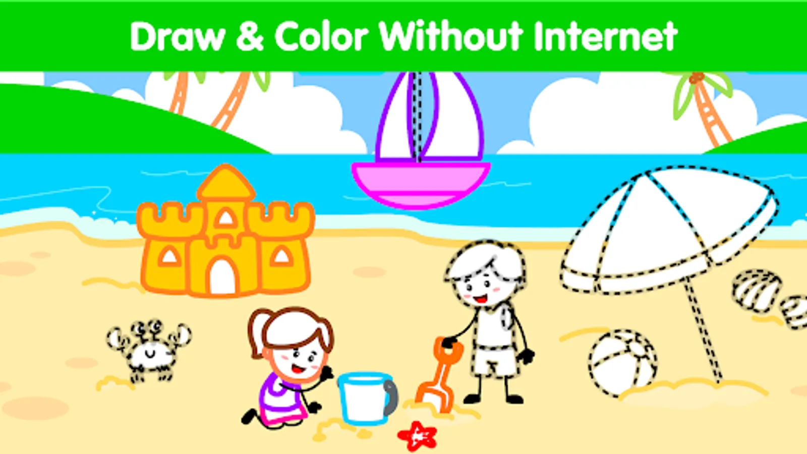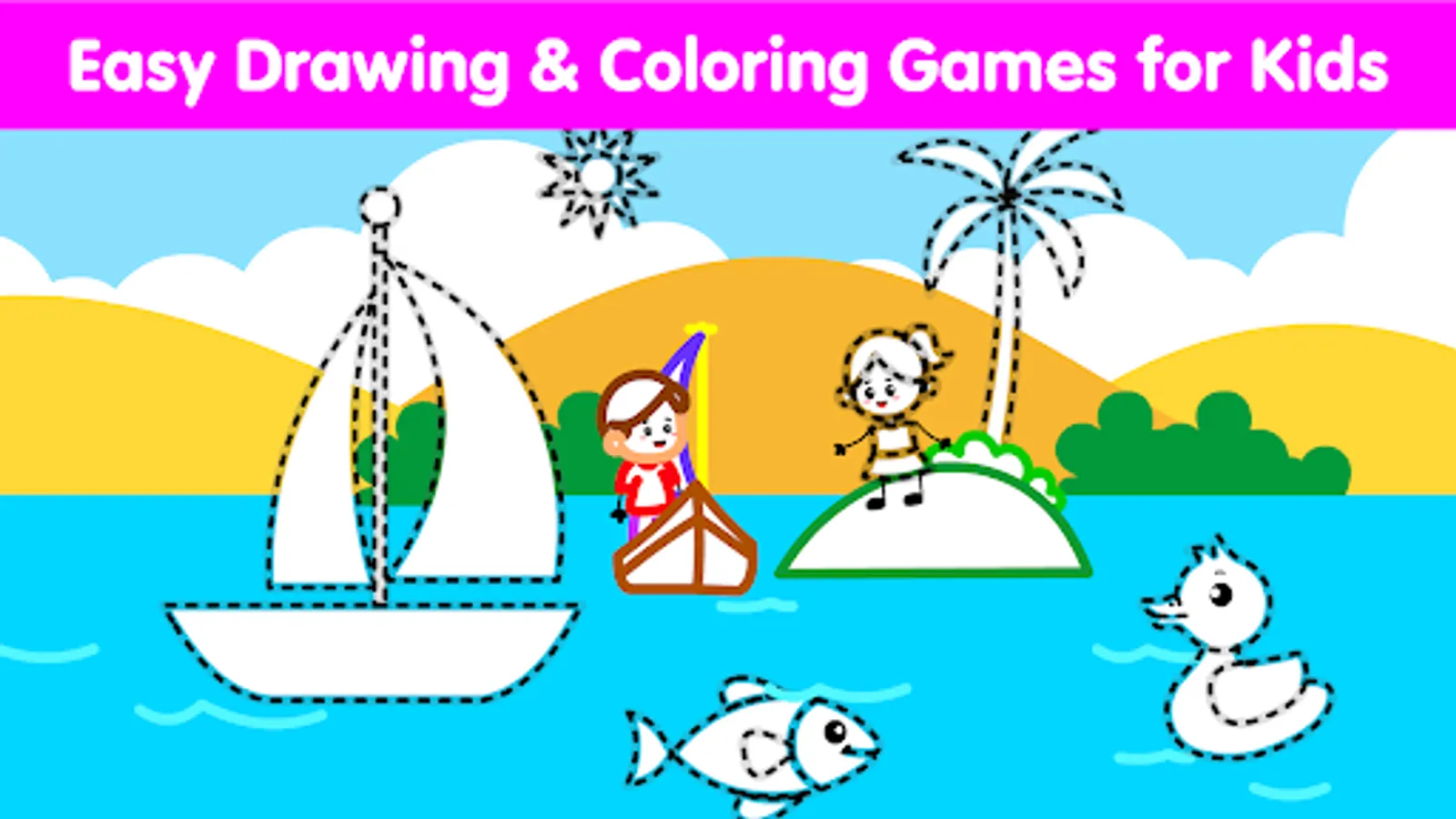 *Lake and beach scenery: Take your little kid on a digital tour! An easy drawing game where kids can draw and color lakes and beaches.