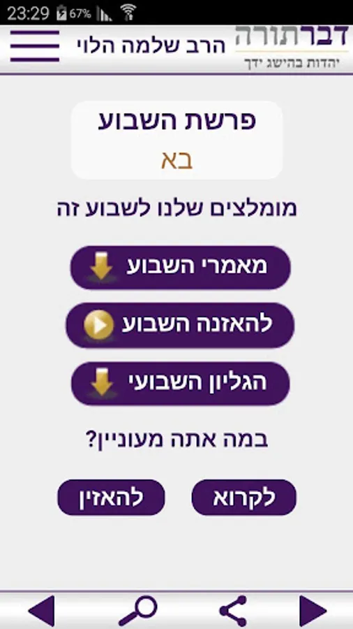 Rabbi Shlomo Halevi puts great lessons: Divrei Torah weekly Torah portions and Israel as well as the dates of the events, the preparation of bar mitzvah boys, pedagogical training for teachers and Jerusalem Torah reading style.