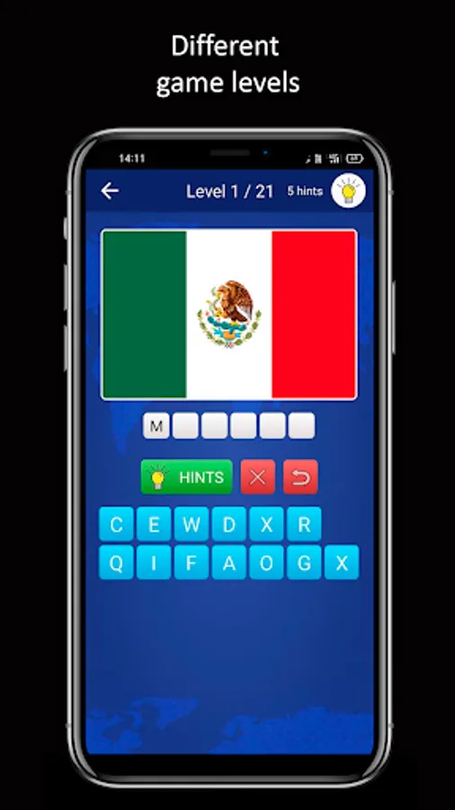 ★ New hints are provided by correct answers to the quiz questions on the knowledge of country flags.