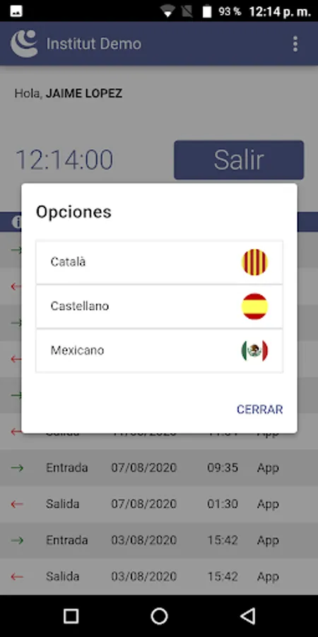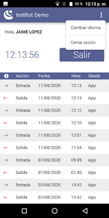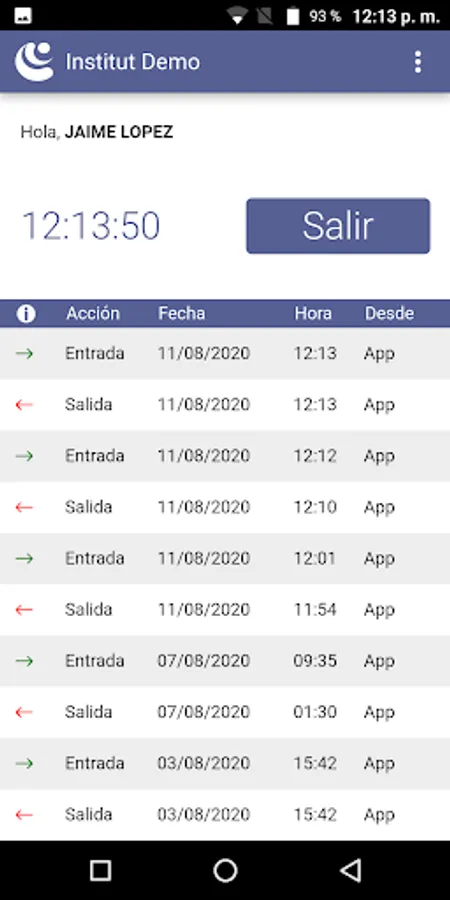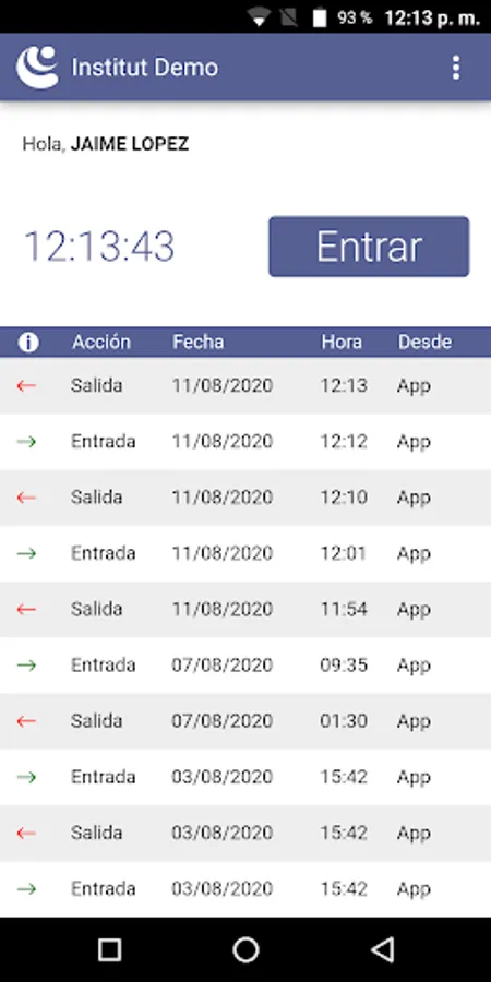 It allows, through a mobile device, to control the entrances and exits of the center's personnel, as well as the geolocation of said device, and to view the last operations carried out.