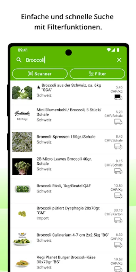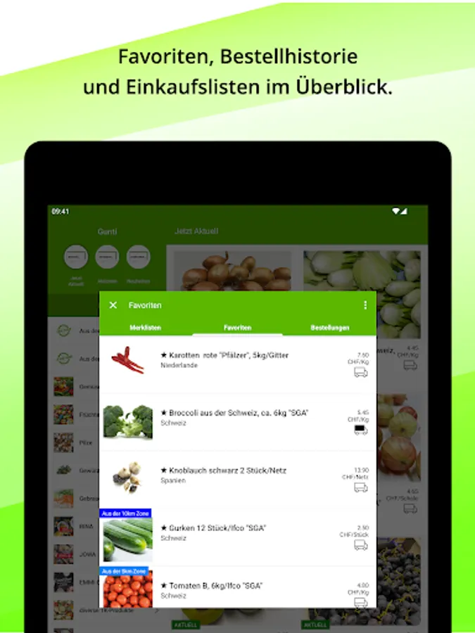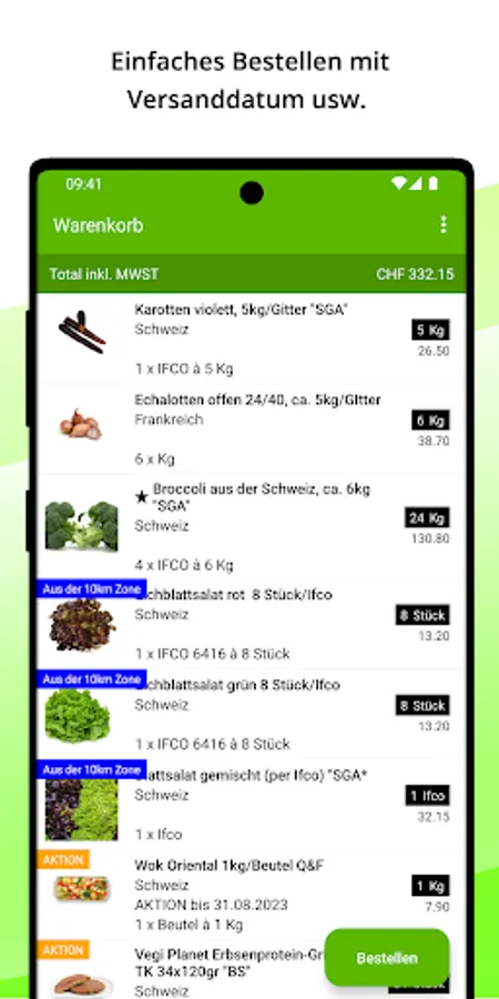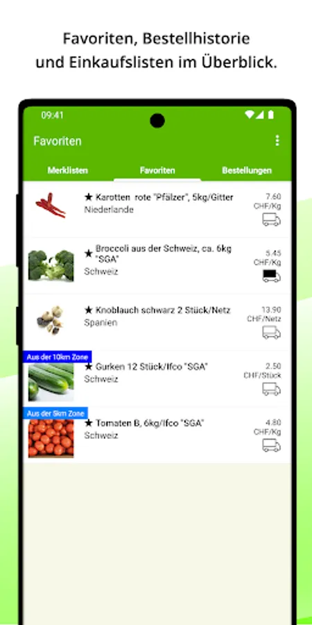 In addition to the individual articles, you will receive information about their origin, possible order quantities and prices. Your shopping list can be personalized so that you can complete your orders even faster in the future.