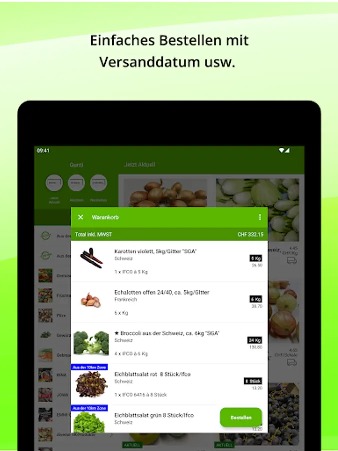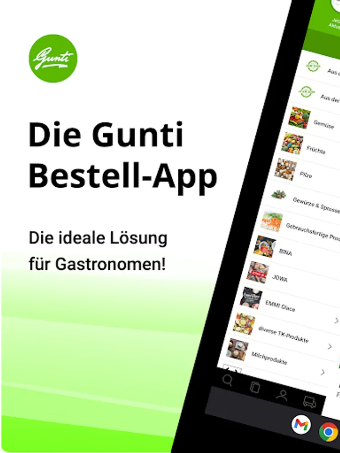 It has never been easier and clearer to order fresh products for the catering trade. The new app from Gunterswiler AG enables you to access and order our entire range directly with just a few clicks. You are always well informed about our products, you can find out about seasonal highlights and current promotions.
