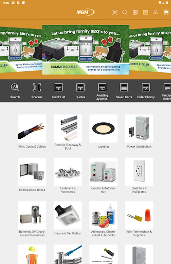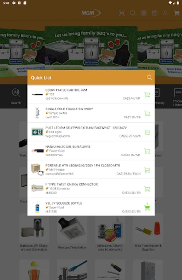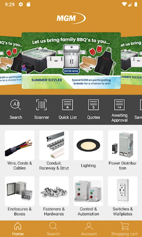 Shop more than 8000 products with descriptions, images, spec sheets, availability, and price. Place your order any time with the branch closest to you for quick pick up or delivery. Never miss amazing deals, compare prices, and track your orders easily with the MGM Electric Shopping App.