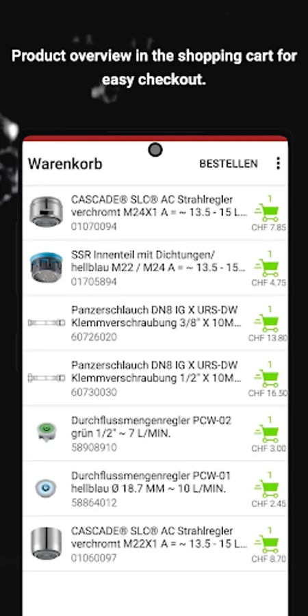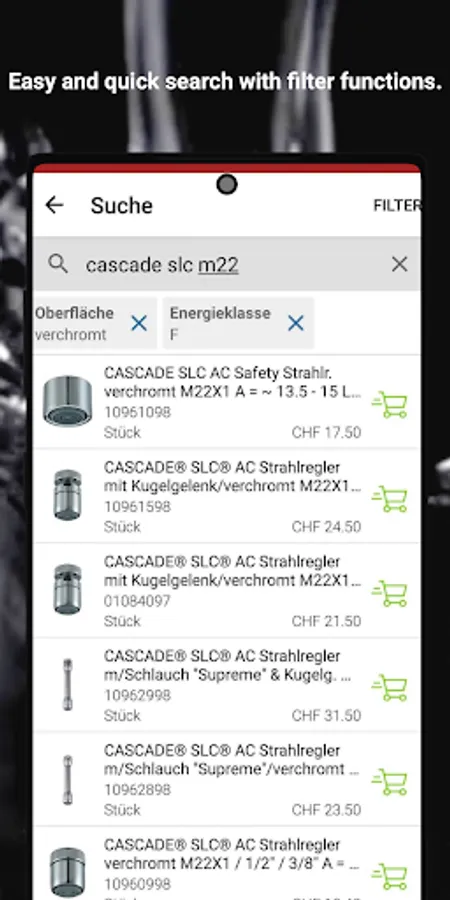 - Use the filter function to find your product in next to no time and order it directly via the app.