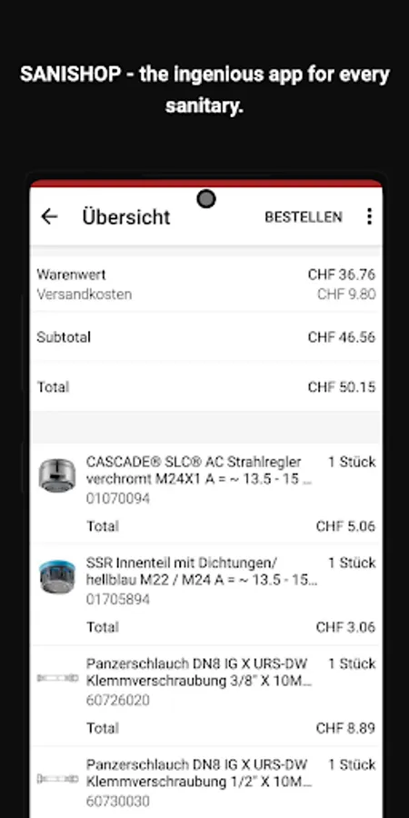 The Sanishop app was developed for the B2B sector in Switzerland and offers numerous special functions for professionals in the plumbing industry: